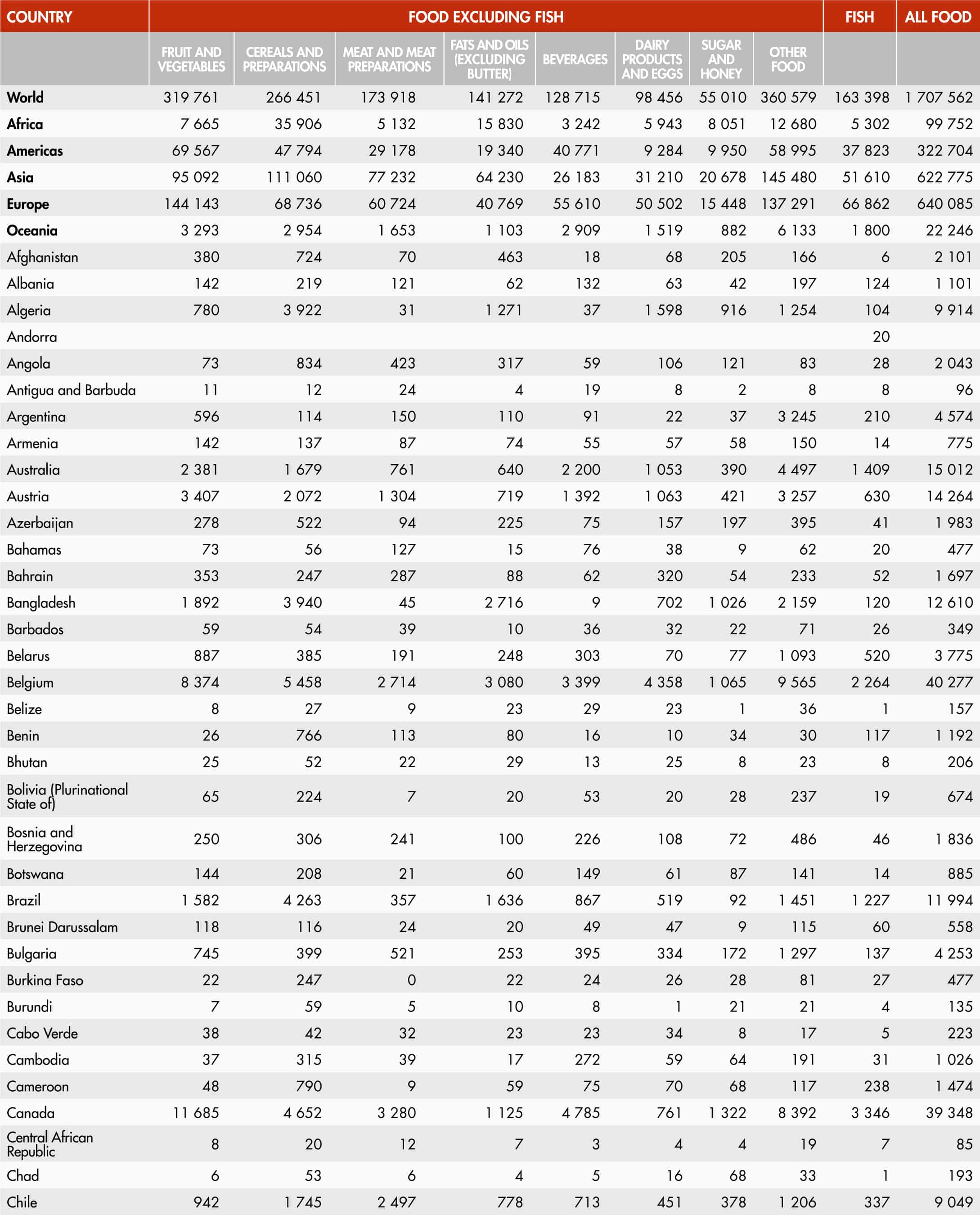 36. Value of world food exports by group