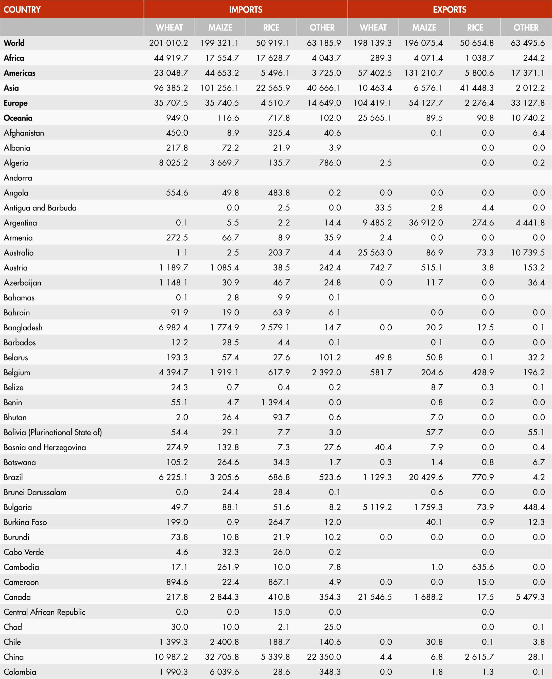 40. Main traded cereals, top importers and exporters (quantities, 2021)