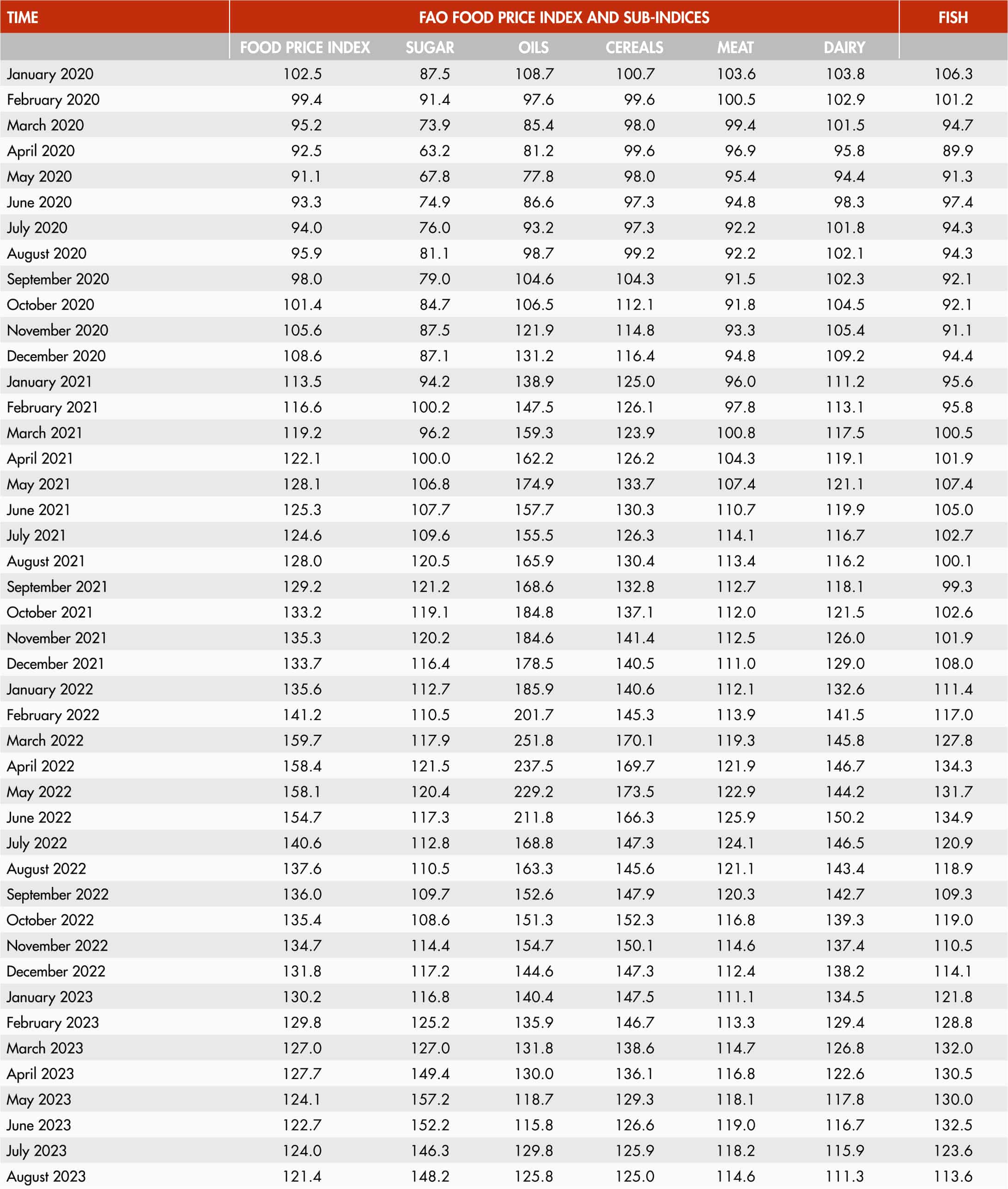44. FAO FISH PRICE INDEX, WORLD (2014–2016=100)