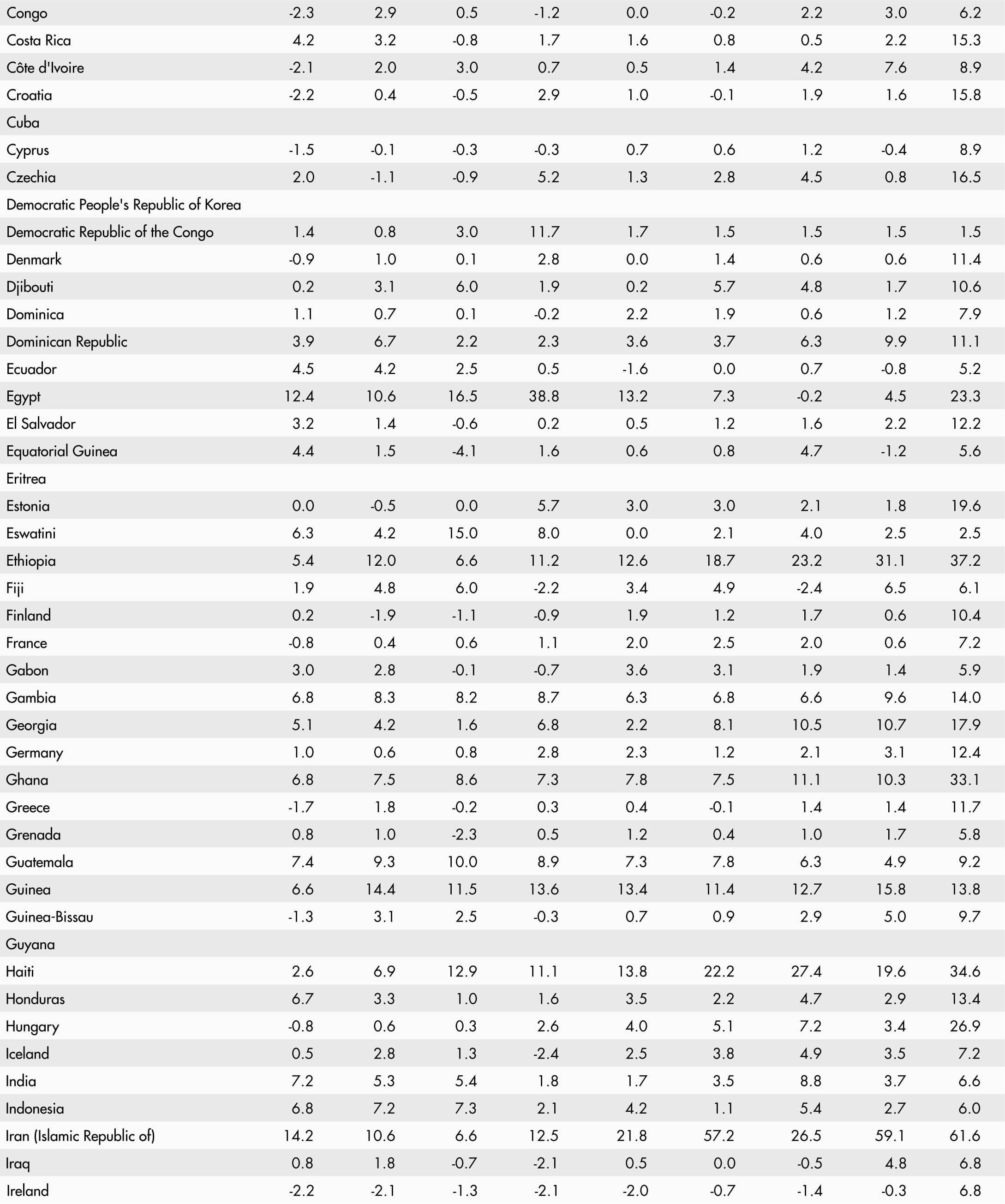 46. Inflation in food consumer prices by region