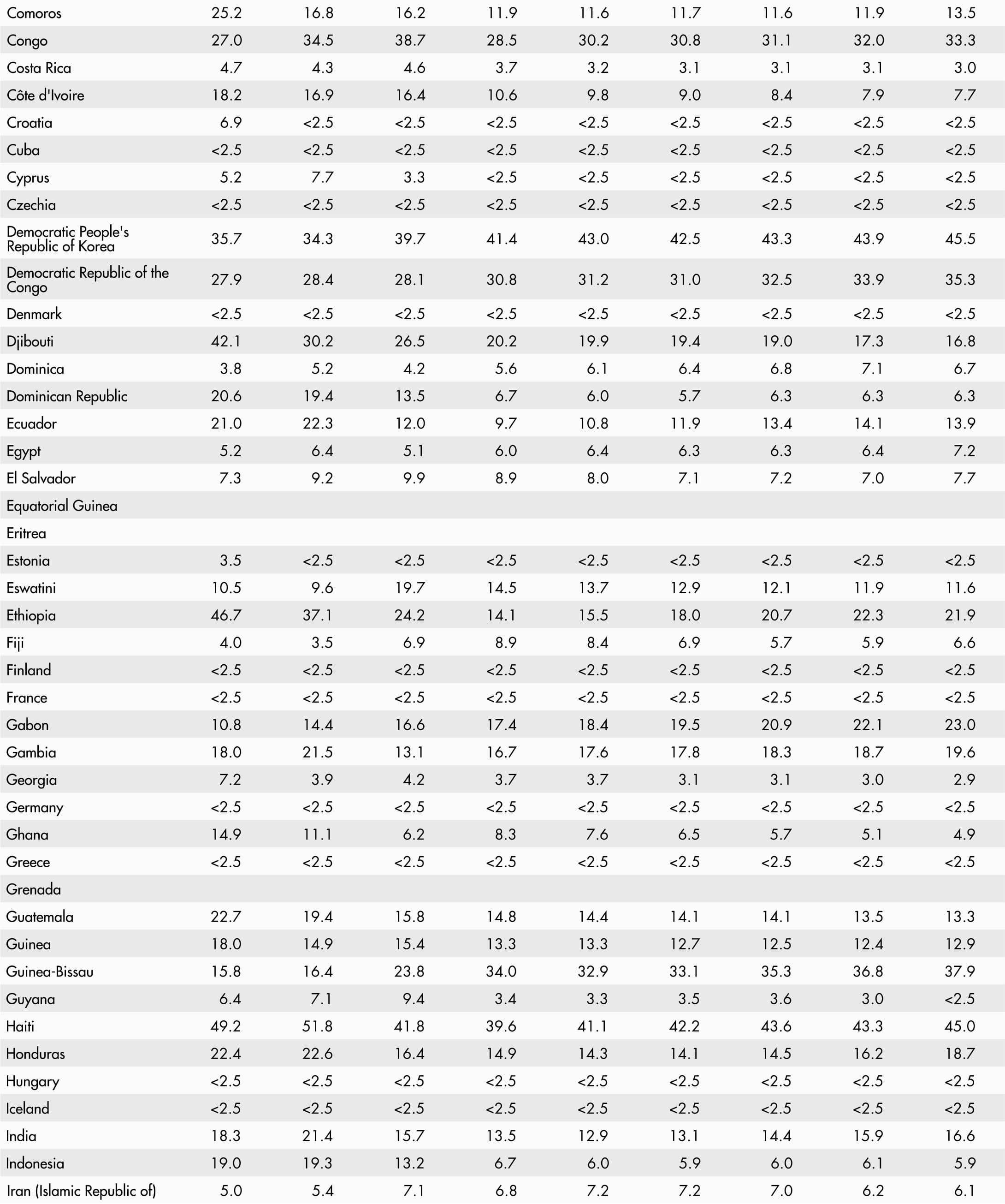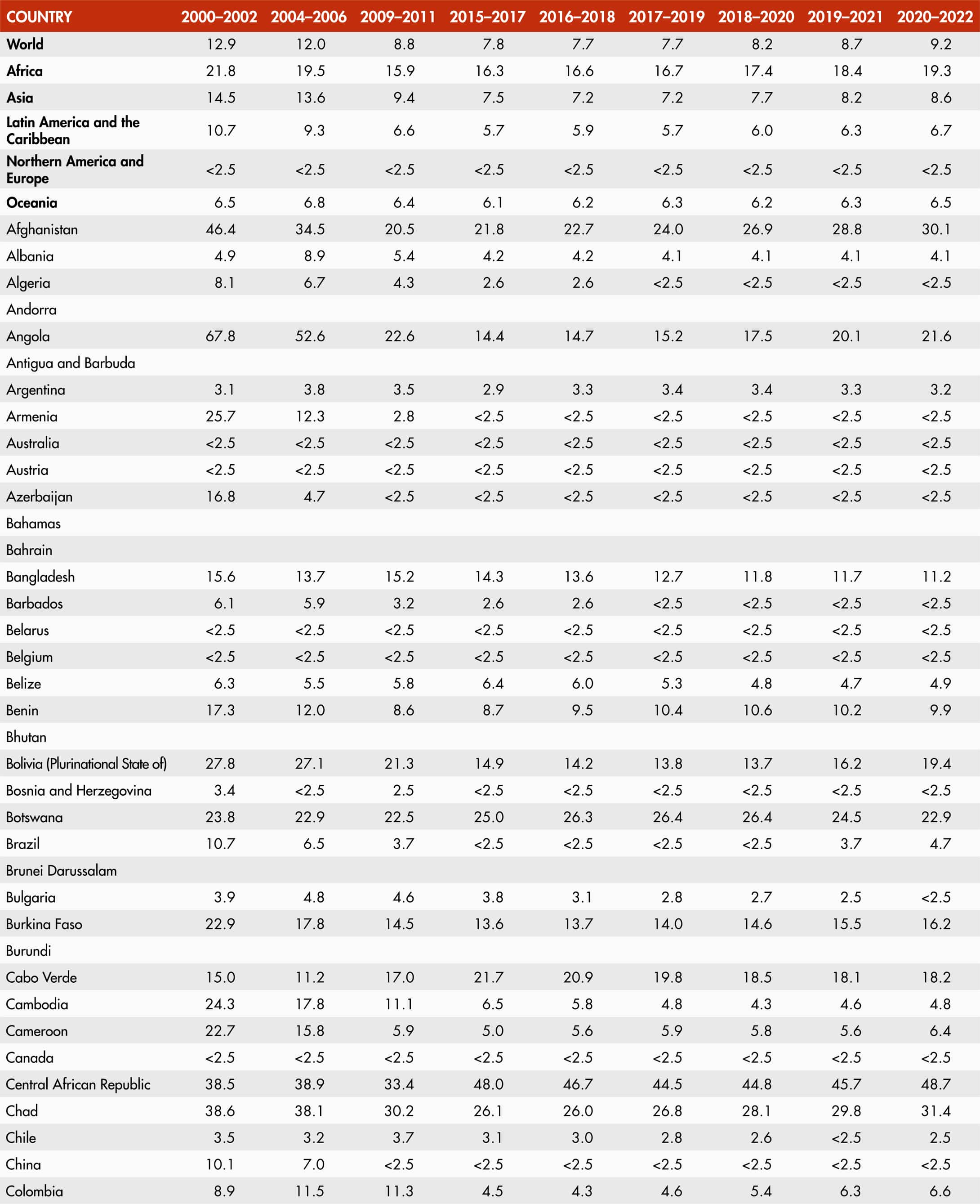 47. Prevalence of undernourishment by region