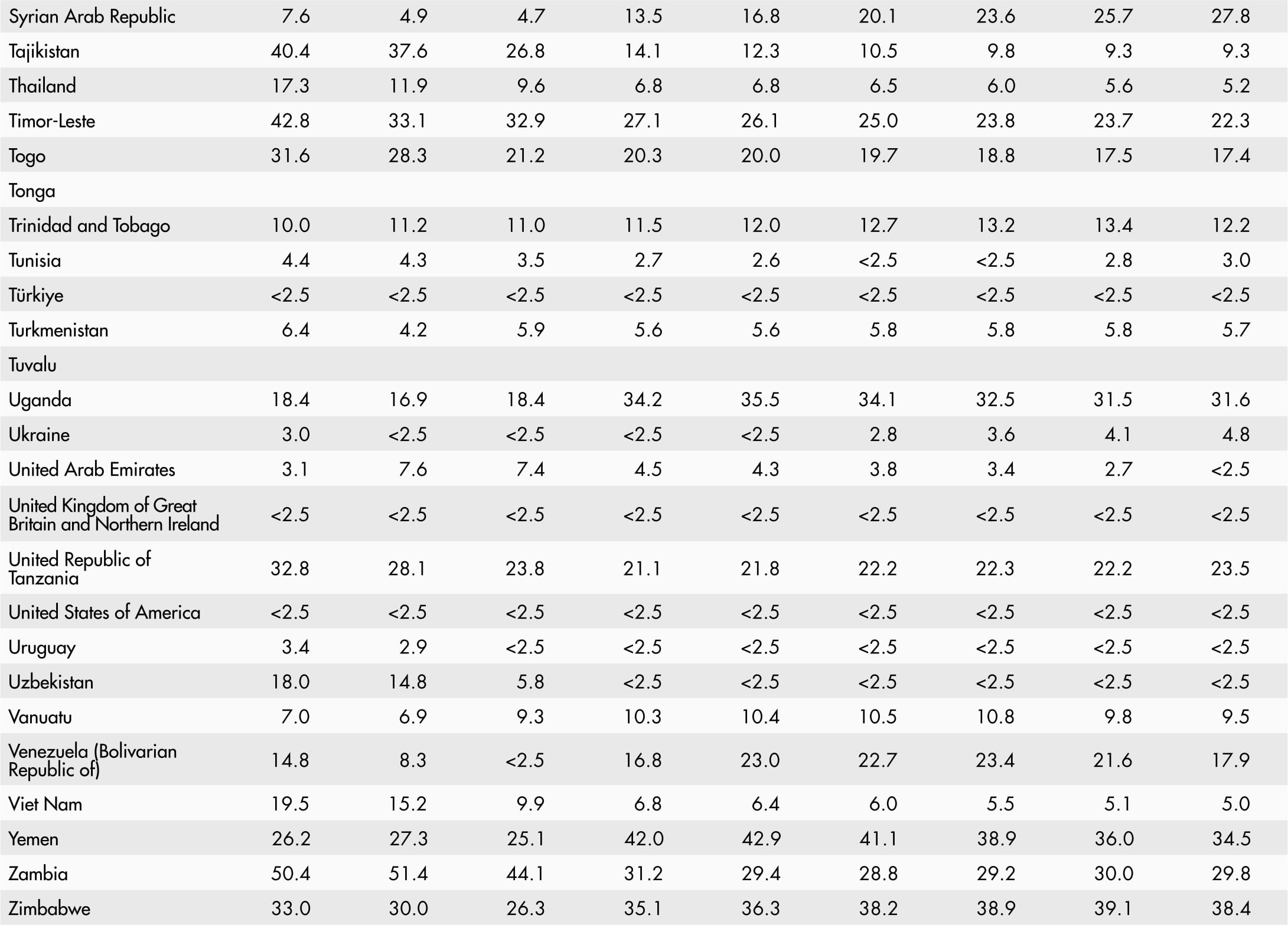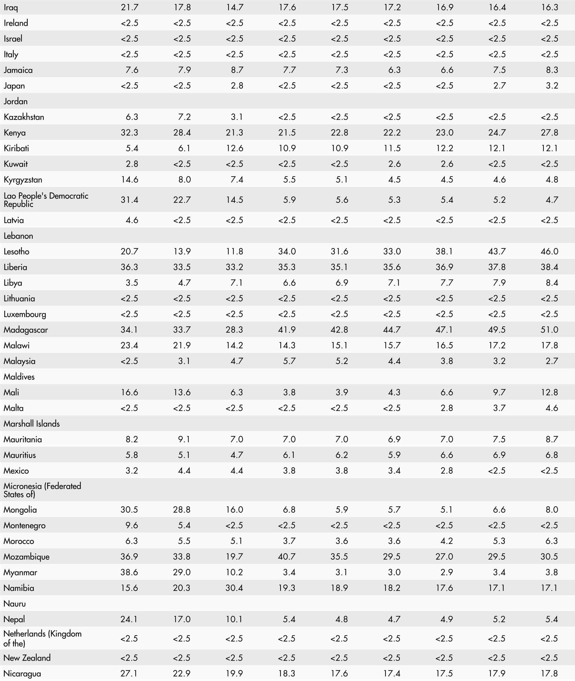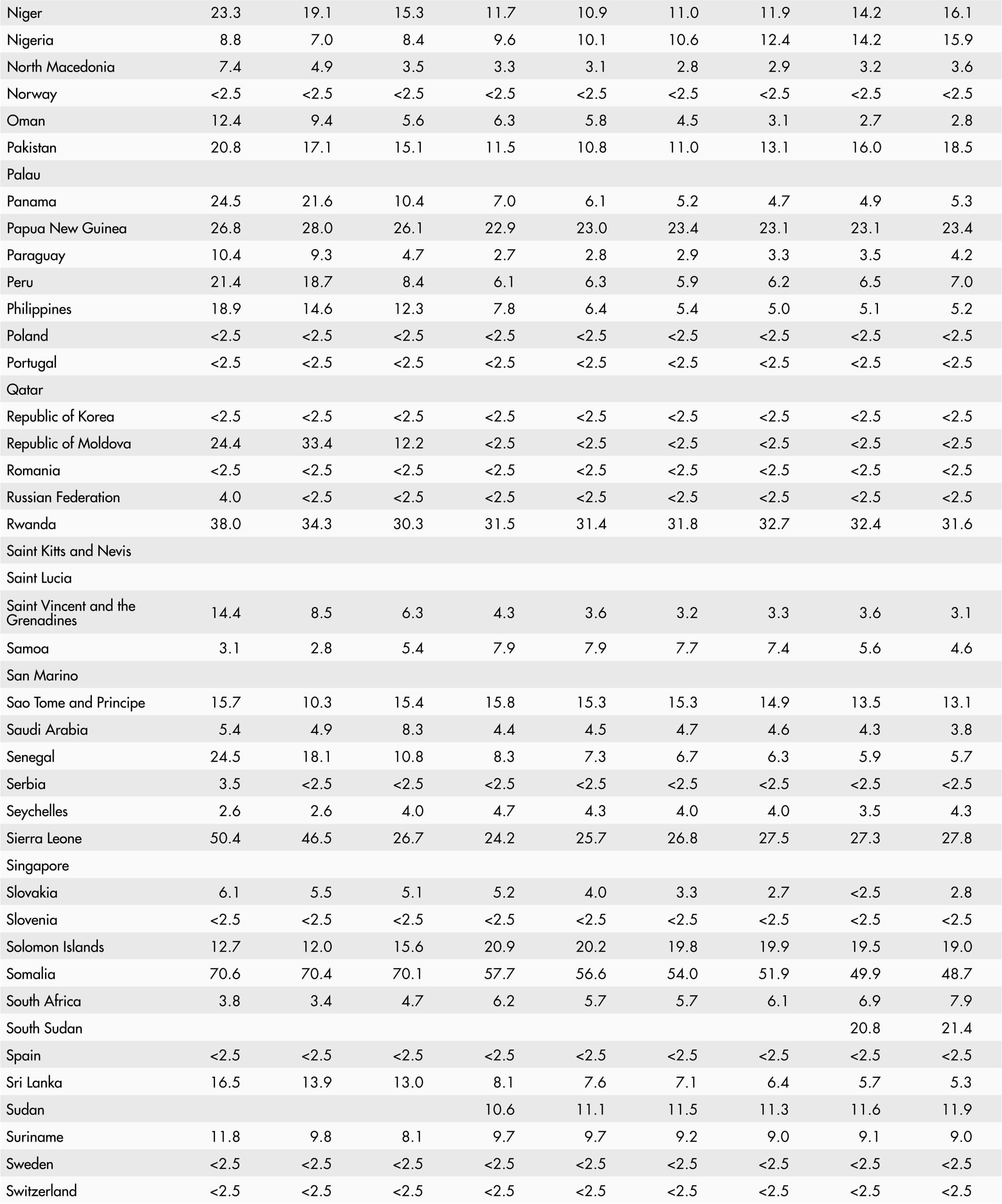 • <2.5 means a proportion less than 2.5 percent.