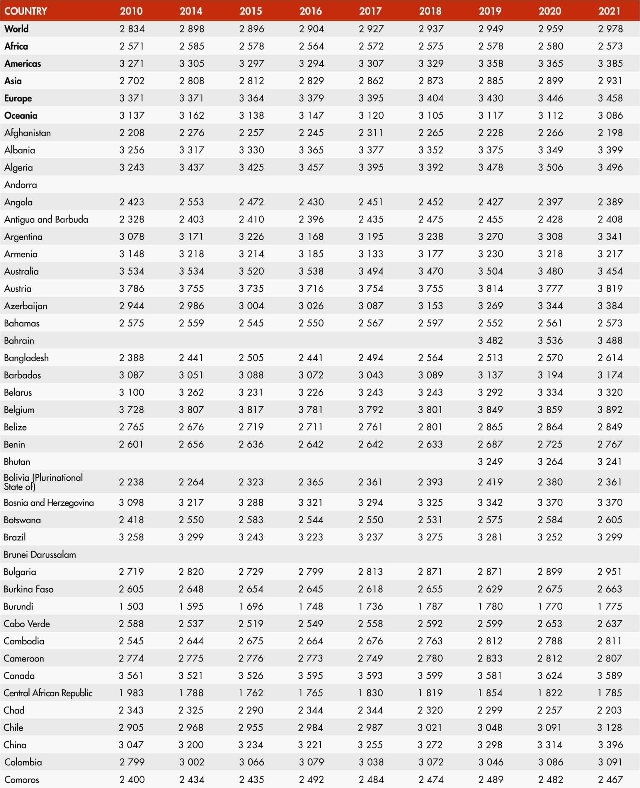 51. Average dietary energy supply by region