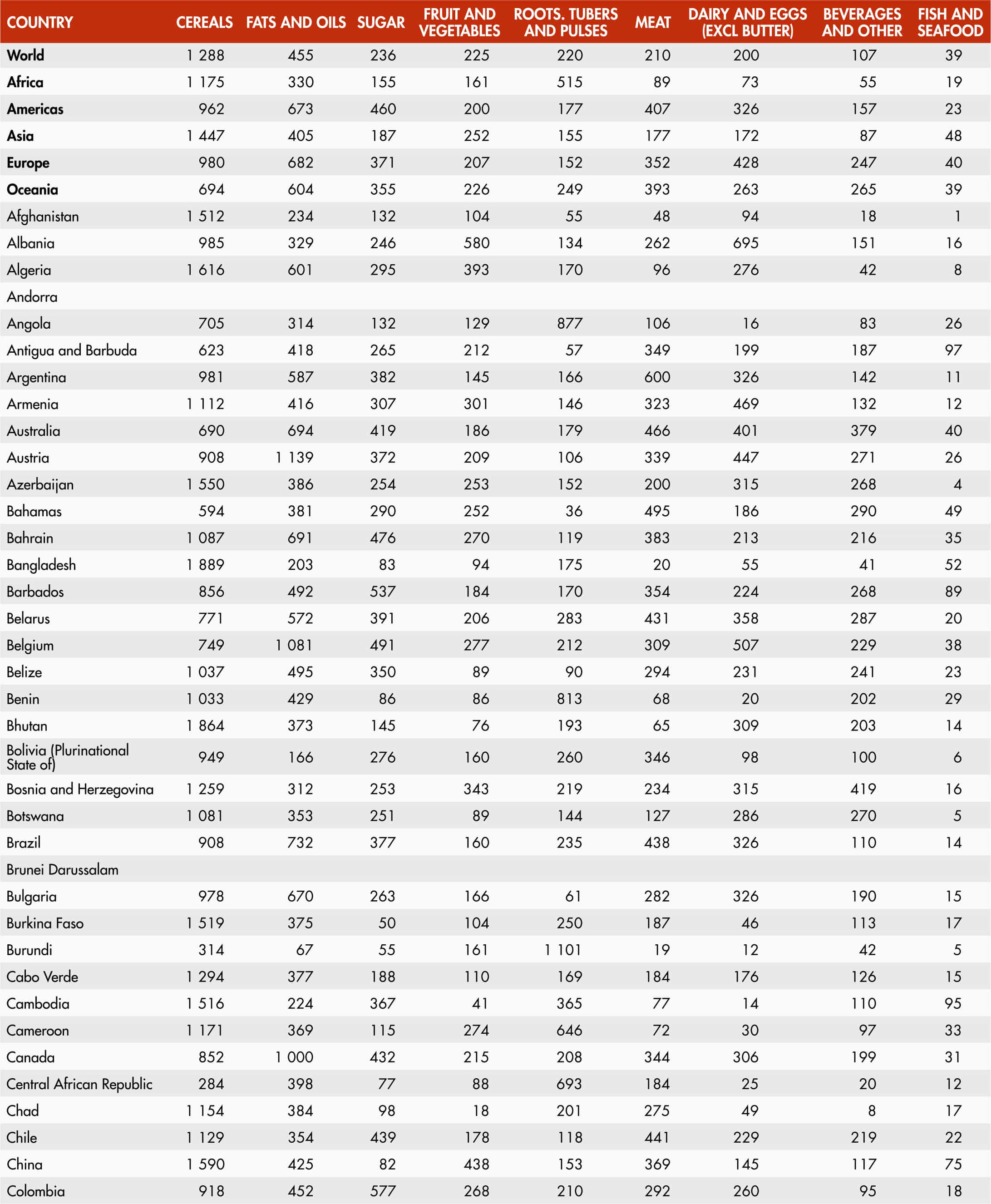 53. Dietary energy supply by region and commodity group