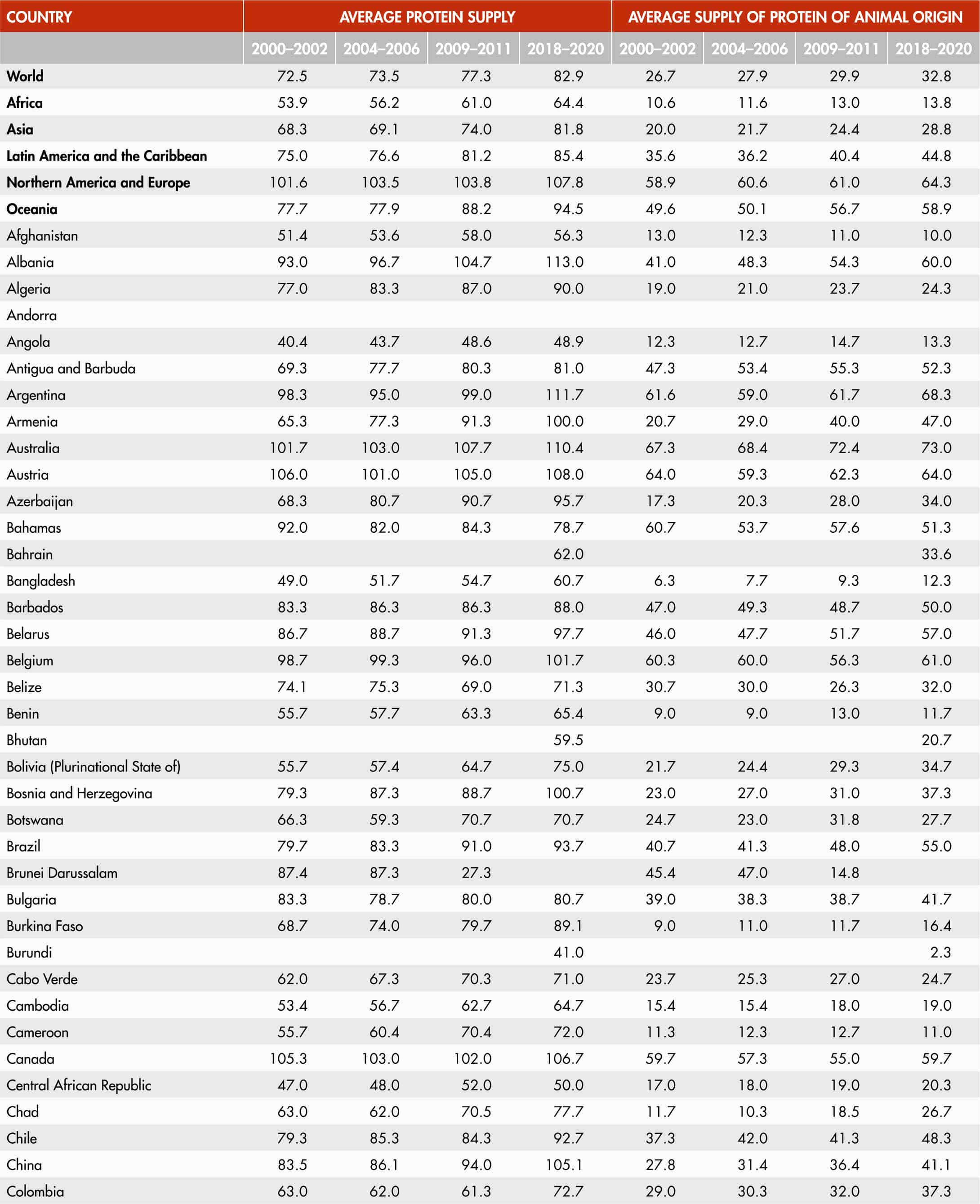 54. Average protein supply by region and origin