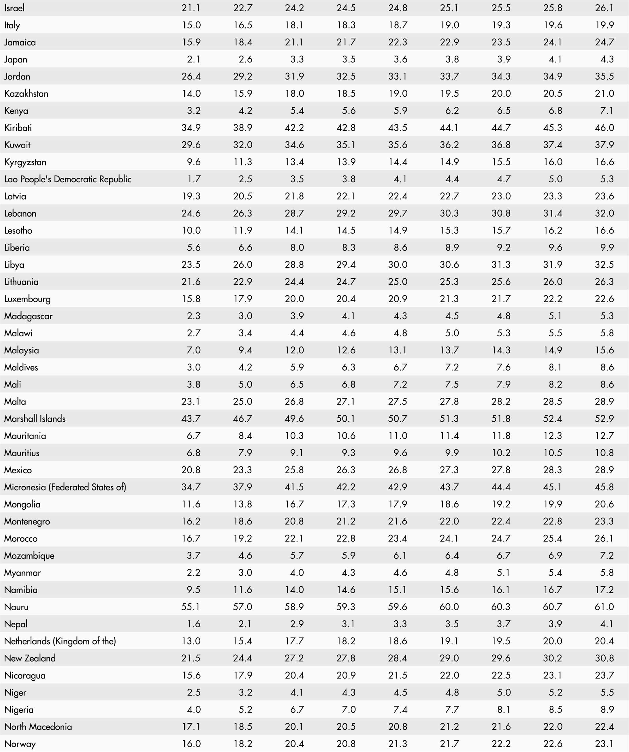 58. Prevalence of obesity in the adult population, top countries (2016)