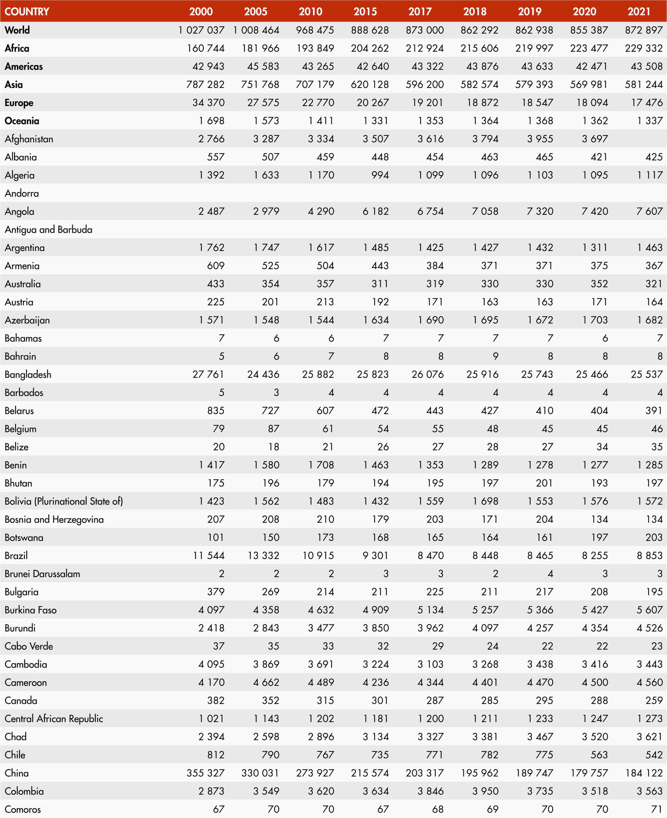 The country classification adopted in this publication is based on the United Nations M49 classification (https://unstats.un.org/unsd/methodology/m49/). The official Food and Agriculture Organization of the United Nations (FAO) names can be found at https://www.fao.org/nocs/en.