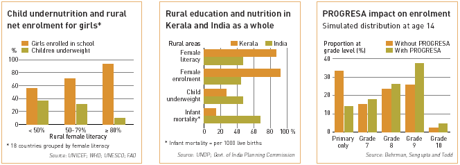Programmes that take direct aim simultaneously at lack of education and malnutrition have achieved notable gains in several countries.