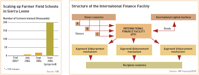 The United Kingdom has proposed one such mechanism - an International Finance Facility (IFF) designed “to 'frontload' aid to help meet the Millennium Development Goals”. The IFF would use bonds backed by long-term commitments from donor countries to provide US$50 billion a year in develop-ment assistance to the world's poorest countries up to 2015 (see diagram).