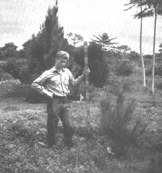 P. khasya has not succeeded and postal delays twice resulted in P. merkusii losing its viability; we were more fortunate with the third lot and good plants were put out in 1960. Some 40 local species and 30 exotics including eucalypts are also on trial.