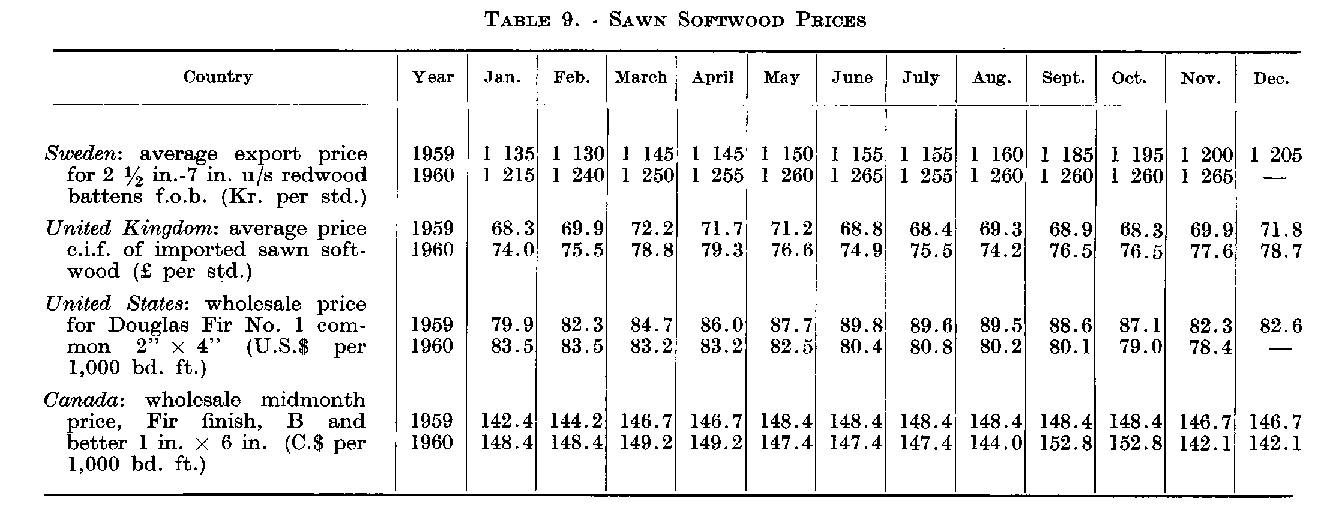 TABLE 9. - SAWN SOFTWOOD PRICES