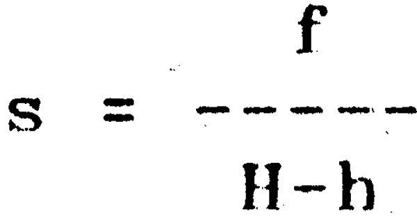 por ejemplo, la longitud focal (f) es igual a 15 cm, la altitud (H-h) = 1500 m;