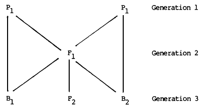 The optimal set discussed above includes only the first two generations (both parents and F1). In the next generation, three groups are possible: F2 obtained by inter se mating of F1; B1 obtained by backcrossing F1 to parent I; B2 obtained by backcrossing F1, to parent 2. There can be difficulties in having these three groups comparable to the parental and F1 groups, because they are generated at a later point in time. However, it may be possible to generate further samples of the parental and F1 groups to give valid comparisons.
