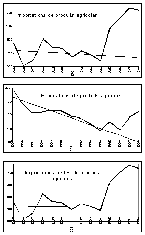 Tableau 2: Evaluation des équivalents tarifaires sur les produits agricoles importés (1995-96 et 1986-87)