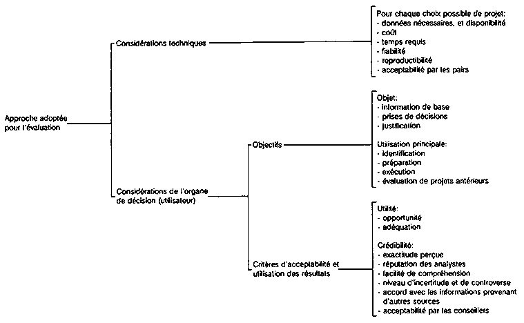 Le premier point peut aider à rendre l'évaluation d'ensemble plus efficace en évitant une dispersion des efforts dans le traitement des différentes questions. La seconde considération est importante si l'on veut appliquer judicieusement les moyens disponibles à chacune des questions auxquelles il faut répondre, et adapter le plan de travail en fonction des besoins et des contraintes.