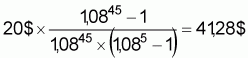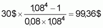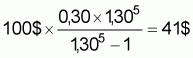 Tout d'abord, en appliquant la formule appropriée du tableau A.6.1 (formule 1 pour un nombre fini de paiements), on obtient le résultat suivant: