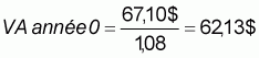 (On sera déjà ramené à l'année 0 puisque les paiements débutent à l'année 1). Pour la deuxième formule, la valeur actuelle à l'année 0 se calculera comme suit: