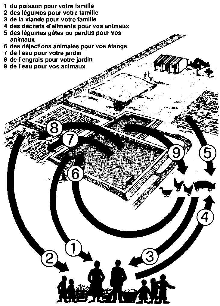 521 De nos jours, beaucoup d'exploitants savent qu'ils peuvent gérer leurs étangs piscicoles en même temps que leur élevage d'animaux domestiques, leurs jardins et leurs champs, de façon à produire mieux et davantage.