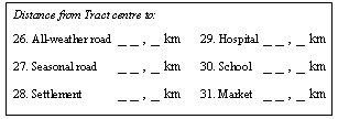 - Year of settlement (22): approximate year when the settlement was established in the tract. If there is no inhabitant in the tract, or if the information is not known, write respectively “n.a.” (not applicable) or “unknown” in the box.