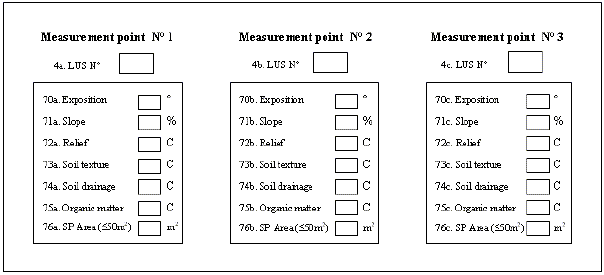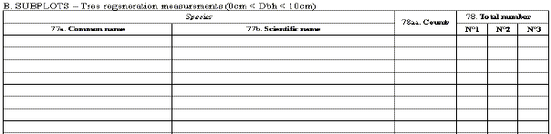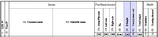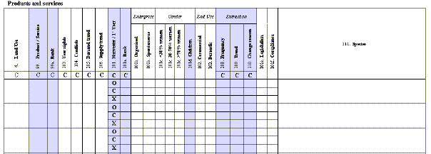 - Species (111): list of species collected in the P/S category by land use. The species will be ranked according to their importance (high, medium or low) and indicated in the corresponding lines as mentioned in the column labelled Species Rank (111a) (respectively H, M or L)6.
