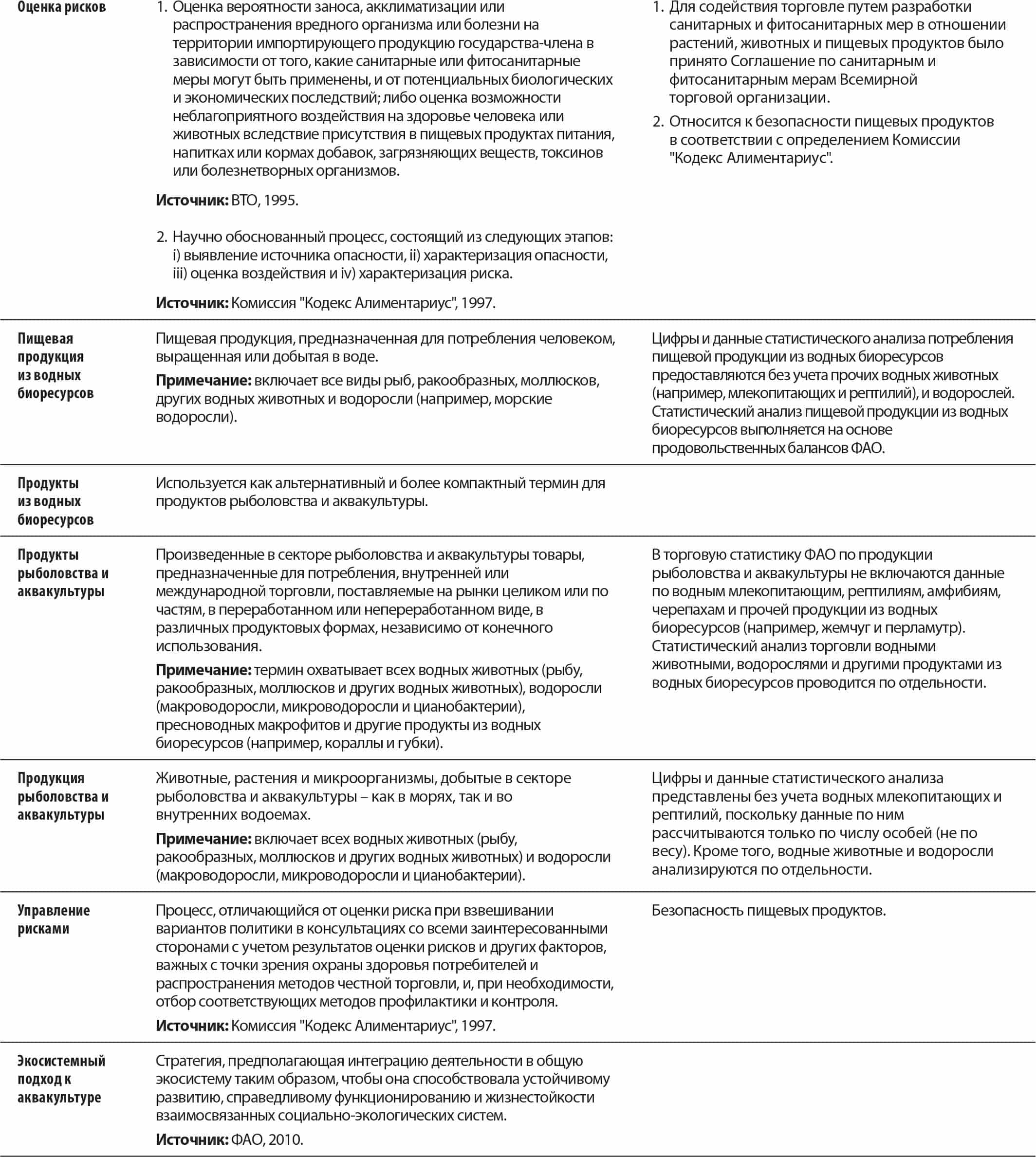 Данный глоссарий составлен во исполнение решения ФАО об анализе, пересмотре и уточнении ряда специфических терминов, требовавших разъяснения. Термины основываются на авторитетных источниках в ФАО или других организациях с учетом особенностей сбора и обобщения данных, которые в ряде случаев ведут к появлению исключений из стандартных определений.
