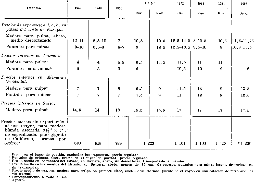 1 Véase también Anuario Estadístico de Productos Forestales, 1955.
