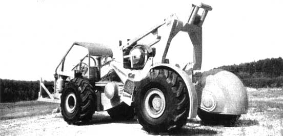TRACTOR «TRAFAGÓN» DE 4 RUEDAS PROPULSORAS. - Las ruedas delanteras del tractor «Go-Getter» (trafagón), a la vez motrices y directrices, tienen suspensión independiente, pudiendo oscilar en sentido vertical hasta 40,6 cm., lo cual asegura la distribución igual del poso en cada una y permite el paso en posición casi horizontal sobre trozas tiradas, tocones, hoyos de descepe, etc. Gracias al sistema de suspensión hidráulica, la altura libre máxima del eje delantero llega hasta 91,4 cm., suficiente para que el tractor trabaje metido en agua 122 cm. La máquina dispone de dos asientos colocados en dirección opuesta, de manera que caminando en un sentido o el contrario, el que la maneja tiene opción a sentarse dando el frente al terreno que va ganando. La fuerza motriz se transmite a cada una de las 4 ruedas por medio de un convertidor hidrocinético de torsión con engranajes planetarios. Los accesorios especiales se componen de una toma de fuerza directa, malacate de 7,5 toneladas, puente para trozas, aguilón de carga, cuchilla de empuje, arado para cortafuego, defensa contra remalla o dosel de seguridad, barra de tracción oscilante, quinta rueda (plataforma giratoria para conexión de remolque), diferencial de 2 velocidades, grupo electrógeno con motor Diesel o de gas de petróleo licuado, contador de horas, tacómetro y remolque «Go-Hauler» para madera de pasta.