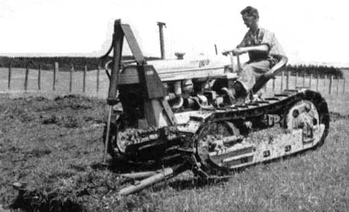 Características: Motor Diesel de 4 cilindros, 21,8 C.F. en la barra de tracción, 3 velocidades de avance de 3,2 a 8,5 Km./h. y 1 de retroceso a 3,7 Km./h., esfuerzo de tracción 1.790 Kg. Anchura normal de las bandas, 25,4 cm trocha (entre centros de las carrileras) 1,07 m. Longitud total, 2,54 m.; anchura total 1,33 m. Altura libre mínima de la barra, 30,5 cm Peso de trabajo, 1.750 Kg.