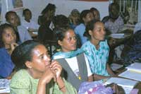 FAO: Improving Client-Oriented Extension Training in Ethiopia The project aimed to improve the ability of extension department staff at all levels to use participatory methods. It began with a training of trainers session on participatory rural appraisal (PRA) and gender analysis. The people who had been trained were then responsible for training field agents who conducted PRAs in the villages. Separate meetings with men and women farmers revealed their very distinct responsibilities, constraints and needs. Women, for example, worked far longer hours than men did - twice as many in the peak agricultural seasons and nearly three times as many at other times (working in the fields, fetching water and fuel, cooking, cleaning, child care, etc.). The PRA also emphasized men's concerns, such as erratic rainfall which forced them to plough several times. Women, on the other hand, suffered more from shortage of farmland, deforestation and lack of access to agricultural inputs, credit and extension services. With their new insights into gender roles, extension staff were able to identify the areas in which each group, especially women, needed extension support. They also recognized the importance of bringing training to the villages, since women's heavy workloads and cultural barriers prevent them from travelling to training centres. For many participating women, this meant that for the first time they had access to training that was relevant to their needs. |