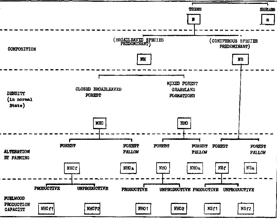 In order to assess the situation as regards fuelwood supply and demand, it was necessary to define from the outset, precisely and unambiguously, the concepts necessary for achieving the objectives of the study. These definitions must be completed by referring to the classification of woody vegetation as used in evaluating the resources: potential yield of fuelwood.