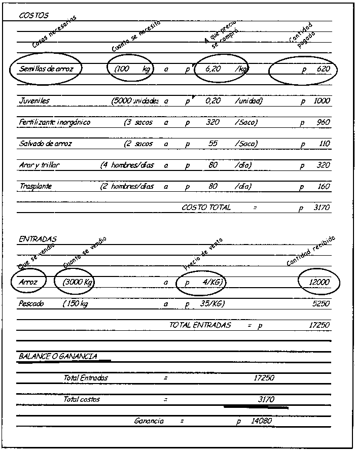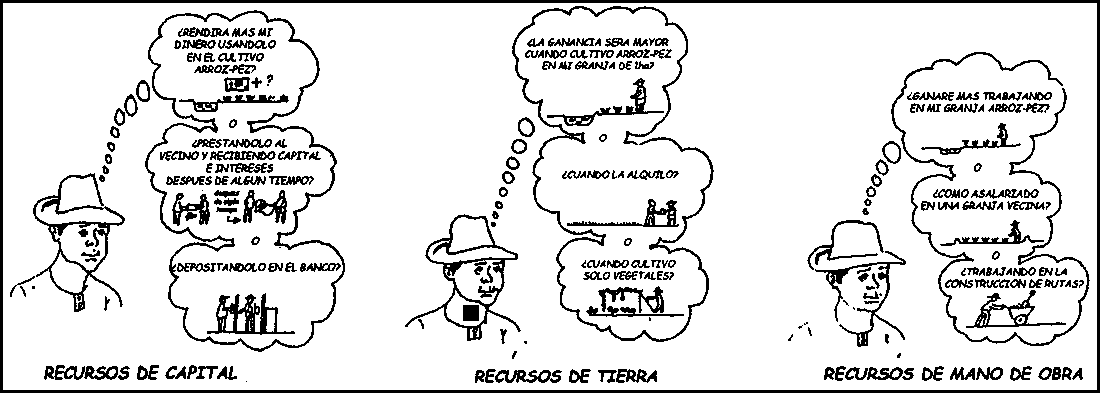 Antes de adoptar una nueva técnica (como cultivo de arroz-peces), al granjero le gustaría saber si el usar sus recursos para el cultivo de arroz-peces le va a dar un mayor ingreso que el invertirlos en otras actividades alternativas.