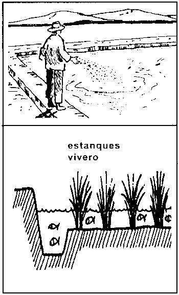 Temas para ulteriores consideraciones Por experiencia, los agricultores que adoptan estas técnicas son relativamente ricos en recursos y/o han tenido acceso a información especializada. Se deberán adoptar medidas sanitarias para los estanques de crianza (v.gr. para erradicar insectos acuáticos depredadores de las larvas de los peces), que no impliquen el uso de productos químicos peligrosos: mayores niveles de cal viva, erradicación del habitat de los organismos nocivos y poner trampas continuamente, etc. Muchos operadores de viveros no tienen acceso a agua corriente, y para condicionar el pez bajo esta situación, los agricultores necesitarían más información específica. El proceso de acondicionamiento tiene otros detalles importantes, que hay que respetar, como el conocer el procedimiento exacto y el reconocer cuales peces están en buena salud y son adecuados para el trasporte. El papel de la mujer sería muy marginal en sistemas de viveros de Bangladesh (donde se tomó este ejemplo), pero en otros lugares de Asia representa la mayor parte de la mano de obra. Los métodos descritos son similares a los usados en cualquier otra parte por operadores de viveros comerciales aunque si tienden a ser más intensivos en Bangladesh, donde también practican la producción de alevines y juveniles en un estanque dentro de un estanque mayor (sistema de un nivel). La práctica de criar semilla de peces, es practicada por un gran número de pequeños granjeros en Bangladesh, quienes necesariamente no cultivan el pez hasta su tamaño de mercado. Esta ocupación de media jornada podría ser una opción para otras familias de agricultores en áreas donde la disponibilidad de semilla de pez constituye una limitación para el desarrollo de la acuicultura. |