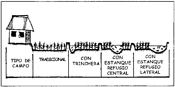 1. Escoger un campo cerca del camino pero lejos de una zona fácilmente inundable. Controlar los diques y poner filtros enrejados finos en la entrada/salida de agua, si hay.