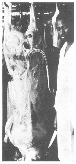Local breeds can produce good carcasses when animals are well fed, as can be seen from this carcass of a young Azawak steer at the Niamey slaughterhouse.