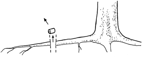 ![]() | Where most cell division happens. Stylised young tree, showing many root tips, three shoot tips, and the layer between wood and inner bark. |