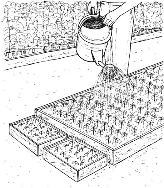 However, for most tree species the best prospects are to root leafy, juvenile cuttings in a shaded poly-propagator (Manual 1), and grow them on in a tree nursery, because this approach: