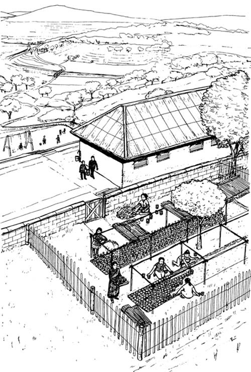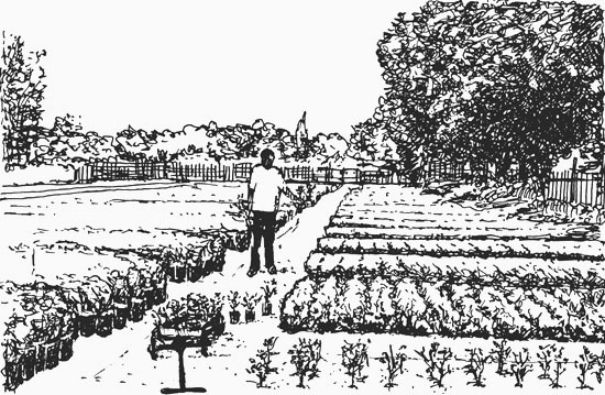 In a small, temporary nursery (C 21–22), there might only be growing areas and paths.