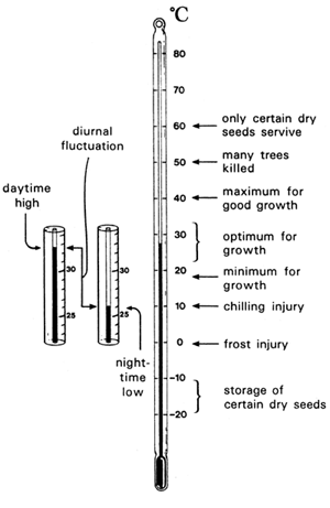 during the day. At 15°C, many species grow poorly, and at about 10°C most are damaged