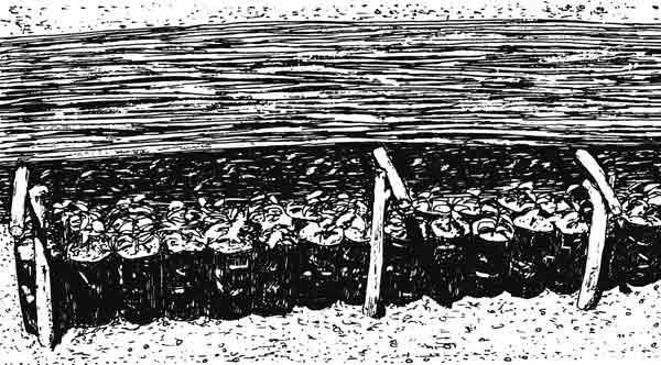 stones hammered down, so that the greenhouse won't fall down or be blown away;