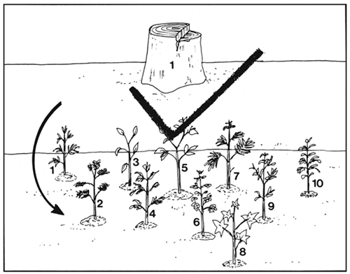 More space may be needed to allow enough room for trees with bushy shoots (C 42), or if the nursery has to be put on a steep slope (C 20).