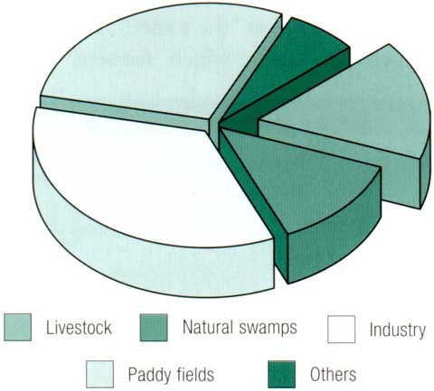 * Including the direct effect of CH4 and indirect effects due to the production of tropospheric ozone and stratospheric water vapour.Source: Bouwman, 1995.