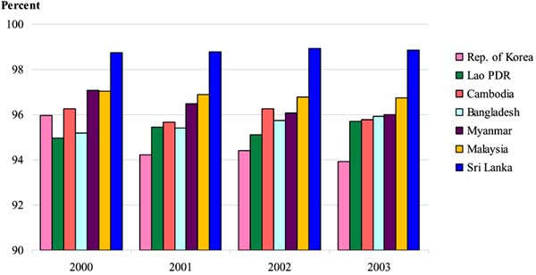 Countries in Asia-Pacific region with largest total rice paddy production as percent of total cereal production