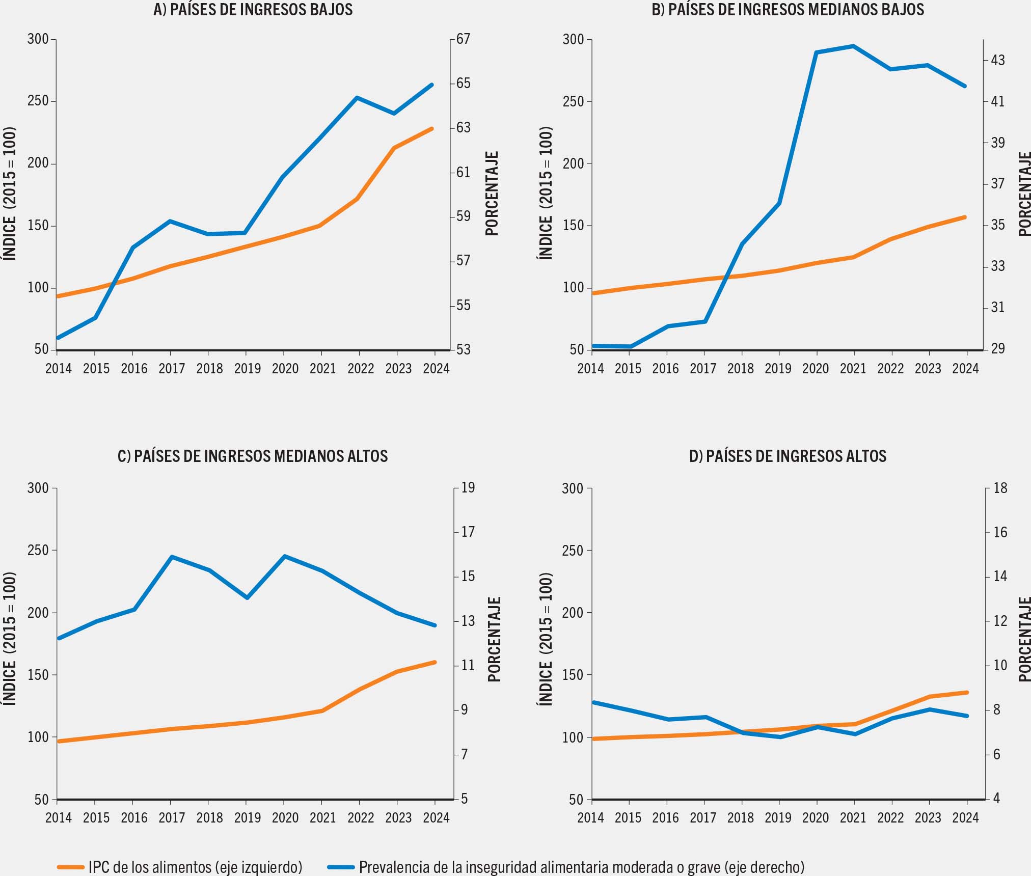 FUENTE: Nakasone, E. e Ignaciuk, A. (en prensa). A global assessment of food price dynamics and food insecurity. Background paper for The State of Food Security and Nutrition in the World 2025. Documento de trabajo de la FAO sobre la economía del desarrollo agrícola 25-09. Roma, FAO.