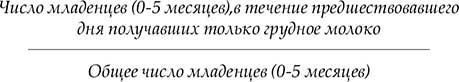 Это доля младенцев в возрасте от 0 до 5 месяцев, которые в течение 24 часов, предшествующих обследованию, получали исключительно грудное молоко без прикорма или питья, даже без воды.