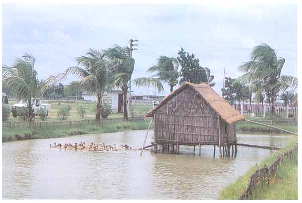 Freshwater aquaculture consists mainly of polyculture of carps and monoculture of tilapia and various catfish in ponds. Integrated fish farming with paddy-poultry/duck-fish is also practised. An area of 0.15 million ha is currently devoted to pond culture in Bangladesh and yields vary between 5 and 9 t/ha/year in scientific culture. Brackishwater aquaculture mainly involves shrimp cultivation and covers an area of 0.11 million ha. Culture systems are predominantly extensive and semi-intensive, mostly using fertilisation and occasionally both feeding and fertilisation. The giant freshwater prawn and tiger shrimp are cultured mostly by extensive, extensive-improved and semi-intensive methods and yields range from 0.16–5.0 t/ha/yr, depending on management and culture technology. Lack of infrastructure in terms of storage, transport, communication, electricity, marketing and inadequate feed and seed supplies have been identified as major constraints to both fresh and brackish water aquaculture development in Bangladesh.