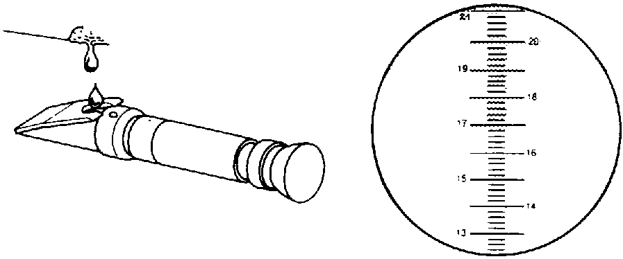 Le degré Brix est le poids en gramme de matières sèches contenu dans 100 gr. de produit. Sa mesure est effectuée à l'aide d'un réfractomètre dont la méthodologie d'utilisation est la suivante: