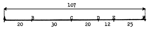 On genetic maps, however, one can often come across distances between genes of 100 units or more. These distances are calculated by summing the distances between intermediate genes. The following diagram shows A to F = 107 units.