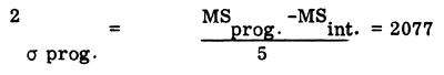 In the last three spawns, one parent consisted of several individuals belonging to an inbred group imported from Holland. The remaining 13 progenies may be treated, with some reservation, as a random sample of full-sib groups of the Israeli carp population. An analysis of variance (TableVI) shows that the difference between the progeny means is highly significant, and the estimate of the between-progeny means variance is 2 077 g2. Similar tests were conducted in previous years and have been analyzed in the same fashion. By pooling the information accumulated over several years, the total variance between means of full-sib families was estimated to be roughly 1 500 g2.