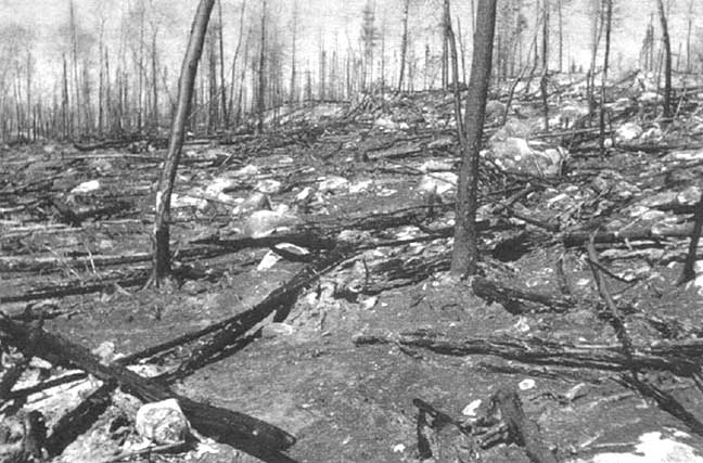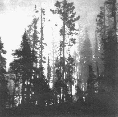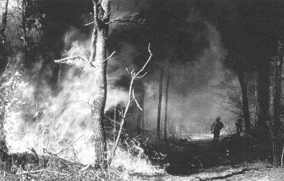 Flames reach the tree crowns in a forest five in Minnesota (1996)