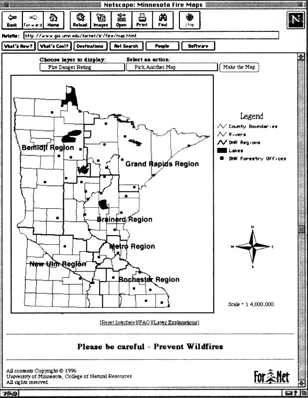 Readers who have access to the WWW can see the applications described below by going to http://www.gis.umn.edu/fornet/ir/fire, where the complete Minnesota Forest Fire Information System is presented.